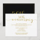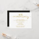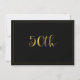 Esta invitación para bodas de oro con 50 años de casados con detalles en dorado y negro presenta un encabezado de texto con caligrafía en dorado sobre un fondo blanco. La parte trasera de la invitación es negra con algo de texto con caligrafía y un borde dorado delgado. Ideal para alguien que busca una invitación simple para bodas de oro y está lista para ser personalizada.