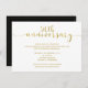 Esta invitación para el 50 aniversario de bodas con tonos dorados y negros presenta un encabezado de texto con caligrafía dorada falsa sobre un fondo blanco. La parte trasera de la invitación es negra con algo de texto con caligrafía falsa y un borde dorado delgado. Ideal para alguien que busca una invitación simple para el 50 aniversario de bodas y está lista para ser personalizada.