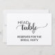 Esta simple señal de cabeza de mesa de boda falsa kraft es perfecta para una boda rústica. El diseño es a doble cara (imprime en ambos lados) y cuenta con una fuente de letra cursiva elegante y un corazón femenino encantador en un fondo kraft. Utilice estas tarjetas para reservar la mesa principal en su recepción de boda.