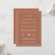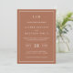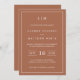 Simple invitación a la boda en terracota con un diseño moderno y elegante con tu monograma de dos letras en la parte superior, un diseño de fecha audaz y tus detalles rodeados de un delgado borde. Todo el texto está en blanco sobre un fondo de naranja/óxido quemado. Las fuentes y los colores de fondo pueden cambiarse a los colores que desee. Una moda y un diseño de diseño, ideal para una pareja minimalista.