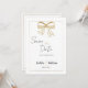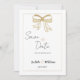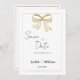 Invitación Simple white gold glitter bow ribbon Save the Date