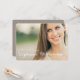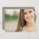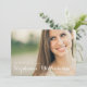 Un diseño moderno simple y precioso que ofrece la foto de su graduado en el frente con todos los detalles del fiesta o de la invitación en la parte posterior en un fondo marrón neutral suave. Diseño blanco elegante de la tipografía con una sensación femenina en un formato horizontal. Una manera intemporal, clásica y hermosa de destacar la celebración de la graduación de su hija.