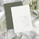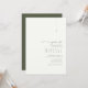 La invitación a la boda minimalista, que se muestra aquí en musgo blanco y oscuro, tiene un acento minúsculo en forma de estrella y una plantilla para añadir fácilmente los detalles del evento. Como parte de una suite boda de moda con una paleta de colores cálida inspirada en la naturaleza y un diseño minimalista, tiene un aspecto atemporal y sofisticado que impresionará a sus huéspedes y ayudará a que su día sea inolvidable. Busque ID1046 para ver todos los productos de este conjunto de bodas.