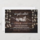 Simplemente no podíamos esperar, Tarjeta de anuncio de boda / invitación, en madera rústica de granja, diseño de luces de cuerda. Esto es perfecto para su recepción de boda y fiesta de celebración después de la boda. Agregue sus detalles en la fuente / letra coincidente.