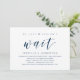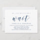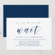 Tarjeta de invitación de boda con tema de escritura azul marino moderno (Simplemente no podíamos esperar). Es perfecta para su recepción de boda / fiesta de celebración después de la boda. Agregue sus detalles en fuente / letra negra a juego.