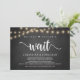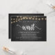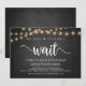 Simplemente no pudimos esperar, Anuncio de Elopamiento de Boda / Tarjeta de invitación, en pizarra rústica de granja, diseño de Luces de Cuerda. Esto es perfecto para su recepción de boda y fiesta de celebración post-boda. Agregue sus detalles en letra / letra coincidente.