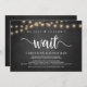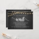 Simplemente no pudimos esperar, Anuncio de fuga de boda / Tarjeta de invitación, en pizarra de granja rústica, diseño de luces de cuerda. Esto es perfecto para su recepción de boda y fiesta de celebración después de la boda. Agregue sus detalles en la fuente / letra coincidente.