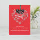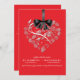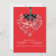 Esta invitación elegante magnífica del boda ofrece una forma del corazón llenada de flores blancas delicadas y una cinta gráfica y un arco del satén negro. Moderno y romántico esto fijará ciertamente la etapa para su día especial. Modificado para requisitos particulares fácilmente. Porciones de colores a elegir de. (rojo retro)