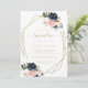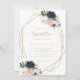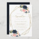Este sorbo floral geométrico dorado y la invitación a ver son perfectos para una reunión rústica con el bebé fiesta. El diseño está decorado con un bonito marco geométrico: azul oscuro, azul, azul marino, rosa, rubor, flores doradas y vegetación.