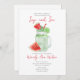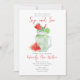 "one in a melon" sorbe y mira por el recién nacido con ilustracion de una sandía ahumada en un frasco de albañil adornado con rodajas de sandía y cal.