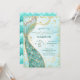 Encanta tu celebración con esta elegante invitación a la sirena, con una crujiente cola dorada, un fondo turquesa y verde y burbujas de oro brillantes, perfecto para chicas que sueñan con mágicas aventuras submarinas.