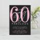 Introducing a chic and stylish "60 and Fabulous" birthday party invitation, perfect for celebrating this milestone with flair. The sleek design features a bold black background with "60 and Fabulous" prominently displayed at the top in elegant bold serif and script calligraphy. The text throughout the invitation combines modern and script fonts in white and pink, creating a fun yet sophisticated contrast against the black backdrop. Ideal for a fabulous 60th birthday celebration, with customizable background colors, fonts, and frame to match your style. Modern 60th Birthday Party Invitation Black Pink White Bold Script Fun Fabulous Typography.