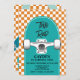 Patinaje de dos Rad 2nd Birthday con cheque naranja y patineta azul.