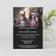 Presentamos nuestra invitación de presupuesto que marca el tono perfecto para su espeluznante celebración! Imaginen a una encantadora novia y novio esqueletos de pie uno al lado del otro en un cementerio iluminado por la luna, rodeado por el resplandor etéreo de cruces y árboles muertos. El novio lleva puesto un esmoquin negro a medida adornado con rosas de ciruela roja y negra y la novia lleva un eéreo velo blanco que también tiene rosas color burdeos. Vestidos con atuendo formal de boda, son el epítome de la espeluznante moda, ¡listos para celebrar su eterno amor! El fondo negro oscuro realza el ambiente espeluznante, y presenta plantillas de texto blanco editables, lo que le permite personalizar su invitación con su propio texto en inglés. Perfecto para cualquier boda de Halloween o reunión espeluznante, esta invitación encantará a sus huéspedes con su divertido y espantoso encanto.
