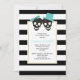 Los elementos de la moderna invitación a la ducha de esta pareja boda de Halloween son una divertida pareja de cráneos negros con un arco acuático y un gorra emparejados con un elegante borde de rayas blancas y negras. Su texto está en un marco blanco con contorno dorado.