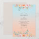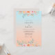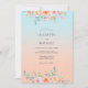 This design features a soft watercolor gradient transitioning from a serene sky blue to a warm apricot peach. Delicate arrangements of peach roses and silvery eucalyptus leaves sit at the top and bottom of the artwork. This dreamy aesthetic creates a romantic atmosphere perfect for a seasonal spring or summer event.