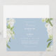 White Hydrangea Wedding Invitation. White typography. Modern Design and font. Elegant. Sky Blue. Horizontal. Elegant script.