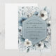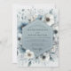 This design evokes a serene, frosted atmosphere with delicate white and slate blue blossoms scattered across the composition. Hints of muted greenery add depth, creating a cool, ethereal mood. The artistic arrangement feels like a gentle winter's dream.
