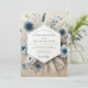 A delicate watercolor design features muted slate blue blooms and wispy grasses. Ethereal anemone-like flowers and soft pampas grass elements evoke a whimsical, nature-inspired atmosphere. The earthy palette creates a dreamy, romantic feel for your special day.