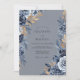 This design features a moody and elegant palette of slate blue, navy, and metallic bronze. Lush watercolor roses and peonies are paired with shimmering golden foliage to create a sophisticated winter atmosphere. The deep, muted background enhances the richness of the botanical elements for a timeless aesthetic.