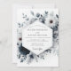Embrace a moody and romantic aesthetic with this elegant floral design. Delicate white anemones and deep navy blue roses are rendered in a soft, ethereal watercolor style. Wispy grey and blue foliage creates a lush, artistic arrangement against a crisp white background, perfect for a sophisticated union.