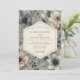 A deep, moody bloom design featuring lush florals in rich slate blue and muted cream tones. The artwork evokes a sense of romantic elegance with intricate botanical details. This striking palette creates a sophisticated and enchanting atmosphere for your special day.