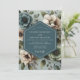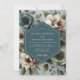 Evoke a sense of timeless romance with this elegant design featuring a muted slate blue and cream palette. Lush, painterly anemones and peonies in soft cream and deep teal bloom amidst delicate sage green leaves. The soft watercolor effect creates a dreamy, artistic aesthetic perfect for a sophisticated union. This botanical composition is both moody and beautiful.
