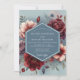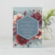 Evoke a sense of romantic drama with this exquisite artistic design. A moody palette of deep burgundy and dusty rose florals is set against a cool, slate blue background. Lush, painterly peonies and delicate buds create a vintage and sophisticated atmosphere. This beautiful arrangement is perfect for an elegant and timeless union.