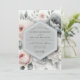 Evoke a sense of timeless romance with this elegant design. The artwork features a stunning arrangement of lush, painterly peonies and delicate blossoms in a sophisticated palette of slate grey, soft blush pink, and creamy white. Muted grey-green leaves add depth and a touch of organic beauty, creating a dreamy atmosphere for your special day.