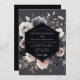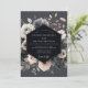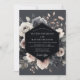 Embrace a mood of dramatic romance with this elegant artistic composition. A striking bouquet of blush pink roses, creamy white blossoms, and slate blue anemones emerges from a deep charcoal background. The painterly details and soft, luminous highlights create a sophisticated and unforgettable atmosphere for your special day's stationery.