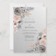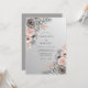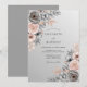 This design features a sophisticated blend of slate gray and soft blush pink tones. Delicate watercolor roses and anemones are accented by copper-toned foliage, creating a romantic and moody aesthetic. These botanical elements are arranged in a balanced composition, perfect for an elegant formal event.