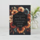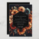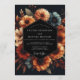 Embrace a dramatic and moody romance with this exquisite autumnal design. A deep charcoal background sets the stage for a lush arrangement of painterly florals. Blooms in stunning shades of terracotta, burnt orange, slate blue, and cream create a rich, high-contrast display perfect for a fall matrimony.