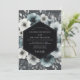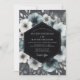 Embrace a mood of dramatic romance with this elegant floral design. Painterly anemones in beautiful shades of slate blue and soft white stand out against a dark charcoal backdrop. Subtle, muted foliage adds a touch of organic texture, creating a sophisticated and memorable composition for your nuptials.