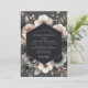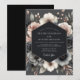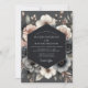 Embrace a somber yet romantic aesthetic with this elegant floral design. A dramatic charcoal background makes the lush botanicals pop in soft watercolor hues. Arrangements of slate blue roses, dusty pink peonies, and ivory anemones create a moody and beautiful composition for your nuptials.