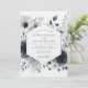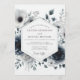 Elegance and drama converge in this exquisite artistic design. A moody palette of slate blue, deep indigo, and charcoal grey creates a sophisticated atmosphere. Painterly white anemones, dark roses, and delicate botanical sprigs are beautifully rendered in a soft watercolor style. This arrangement is perfect for a romantic, modern, or winter-themed union.