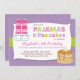 Personalice las invitaciones de la fiesta de cumpleaños del Sleepover de los pijamas y de las crepes de este niño. Pijamas lindos de las características con los deslizadores y una pila de crepes. Personalizar de JDDigiDesign de algunos elementos con sus detalles de la fiesta de cumpleaños.