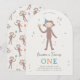 This sweet Slumberkins first birthday design features Bigfoot smiling proudly while holding a birthday cake and wearing a festive party hat. Soft, neutral tones give the artwork a calm and cozy feel, while scattered confetti and playful musical notes add a sense of fun and celebration. The gentle illustration style and arched layout create a warm, storybook-inspired look that feels perfect for a toddler’s milestone birthday. The name, and party details are fully customizable, making this design easy to personalize for a meaningful and memorable first birthday celebration with a beloved Slumberkins character.