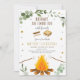 Esta encantadora invitación incluye nuestros ilustraciones de s'mores hechos a mano y fogatas con acentos de vegetación acuática.