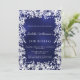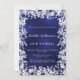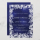 For an elegant 50th (or any age) birthday. A navy blue, uneven colored background. Decorated with a white snowflake frame. Personalize and add a name, age and party details. The name is written with a hand lettered style script
