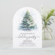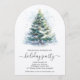 A snowy decorated Christmas tree accents these arch-top holiday party invitations with your details in chic lettering.