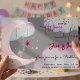Cuta acuarela minimalista invitación de cumpleaños de luna para cumpleaños de Chica y niño. Simple y lindo. Nombre editable, dirección.