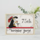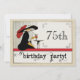 Invitación a la fiesta de cumpleaños de Personalizable Art Deco para una mujer, que se muestra aquí por 75 años, el número de años, nombre y detalles de celebración se pueden personalizar para que se ajuste a su ocasión especial. Elegante dama de moda vintage, guante, gran gorra y plumas de plumas se sienta en la mesa de la cafetería tomando un cóctel o bebida refrescante, esperando que sus amigos vengan con ella para su evento de hitos. Viejas invitaciones a fiestas con un toque de giros y caprichos y nostalgia de las expresiones de papel.