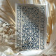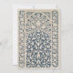 Esta sofisticada invitación a la boda combina la elegancia atemporal del azul marino con la suavidad de la crema, presentada a través de un exquisito diseño de encaje islámico. La invitación muestra un fondo azul marino con estampados de encajes de color crema, haciendo eco del intrincado arte que se encuentra en los motivos islámicos tradicionales. El diseño arquitectónico de arco en la parte superior del frente enmarca elegantemente los detalles bodas, escritos en un tono crema complementario. La parte posterior continúa el tema con una columna de largo alcance del patrón de encaje, dejando espacio para información adicional o un mensaje personal. Este diseño, enraizado en la belleza cultural, es una elección impecable para las parejas que desean hacer una declaración de elegancia y patrimonio.