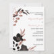 Elegante caligrafía de escritura manuscrita de oro rosa con sofisticadas invitaciones florales en blanco, negro y rosa. Esta elegante y elegante invitación floral de oro subió es perfecta para cualquier chica de moda elegante y sofisticado. Este diseño es ideal para un evento fiesta moderno y elegante. Personalizar este diseño con su mensaje e información personalizada. Todos los diseños están impresos