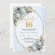 Invitación Soft Dusty Blue Floral Gold Sweet Sixteen Invite
