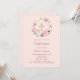 A soft pink blush colored background, decorated with watercolored pink and white flowers in a wreath and a golden cross. Personalize and add a name and details.
