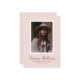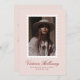 Modern one photo graduation announcement featuring a soft pink background, white postage stamp–style frame, and elegant red script typography. The gentle color palette creates a warm, refined look that feels modern, feminine, and timeless.