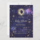 Invitación Sol celeste, luna, estrellas morado cielo nocturno