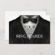 Tarjetas de solicitud de boda de lujo para padrino de anillo con esmoquin - El fondo es un esmoquin negro formal con corbata de lazo. Dice 'Se solicita su servicio como Padrino de Anillo'. Cambie para personalizar las solicitudes de la fiesta de bodas para todos sus chicos: padrino, acompañantes, padrino de anillo y acompañantes junior. ¡Tienes a la chica, ahora es hora de reunir a los chicos!