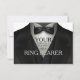 Tarjetas de solicitud de padrino de anillos de traje de gala elegantes - Fondo es un traje de gala negro formal con corbatín. Dice 'Se solicita su servicio como Padrino de Anillos'. Cambie para personalizar las solicitudes de la fiesta de bodas para todos sus chicos: padrino, amigos del novio, padrino de anillos y jóvenes amigos del novio. ¡Tienes a la chica, ahora es hora de reunir a los chicos!